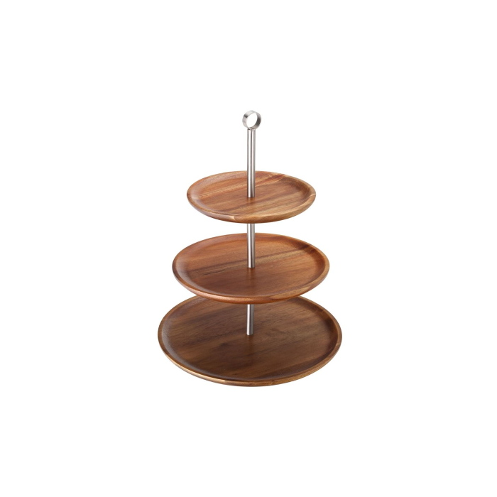This Acacia Wood sharing platter makes displaying and serving a wide range of snacks easier than ever. The 3 tiered wooden platter allows for an attractive display of a wide range of food items, including but not limited to sandwiches, biscuits, muffins, cake slices, and other party food items.
