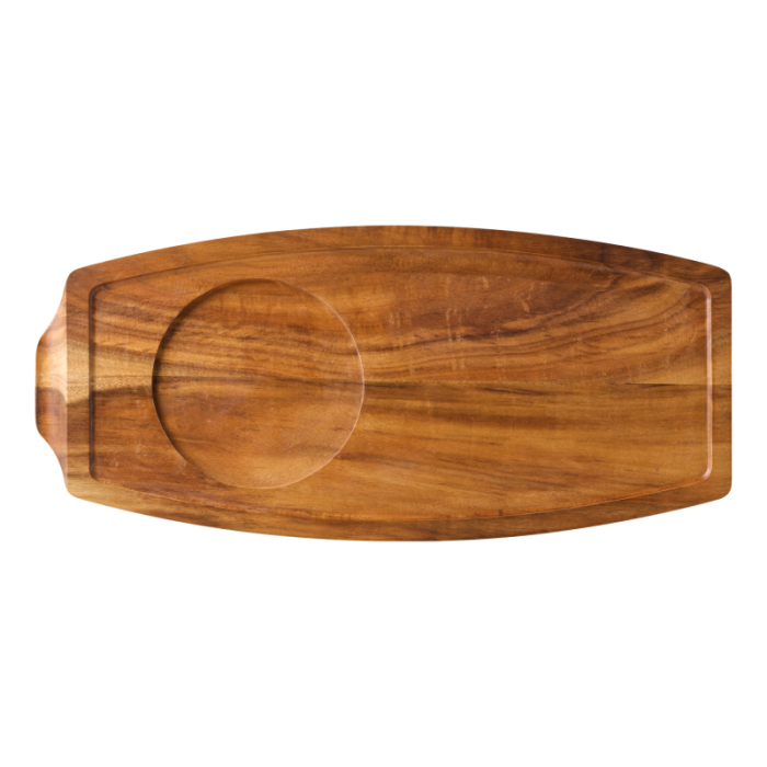This reversible Acacia Wood Board is extremely versatile for a wide range of uses. It can be used with bowls, pans, cloches and other kitchenware display items.