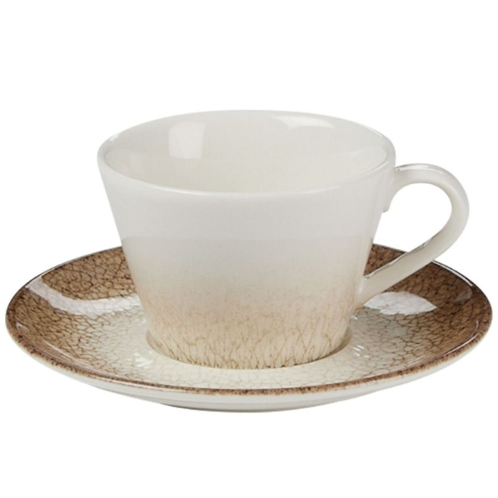 The Academy Fusion Scorched Tea Cup is stylish and rustic. The cup has a splash of colouring at the bottom, which matches perfectly with the Academy Fusion Scorched Double Well Saucer (sold separately). Made from vitrified porcelain, the cup is strong and has been designed with the ever-changing and fast-paced hospitality sector in mind.