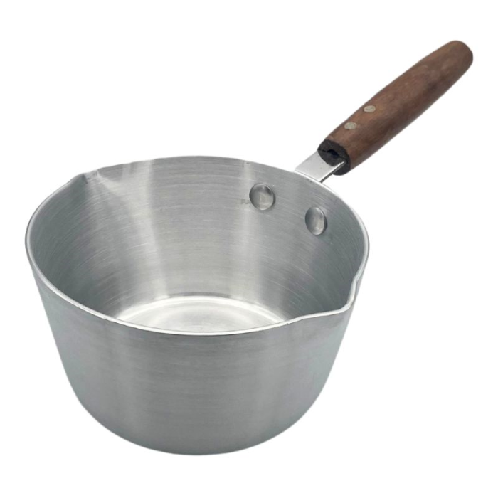 The Aluminium Milk Pan with Wooden Handle is a small, specialised pot designed for various kitchen tasks, primarily involving liquids and delicate cooking. This specific pan holds 1.4 litres and measures 16cm. The pan's small size and gentle heat distribution make it ideal for heating milk without scorching.
