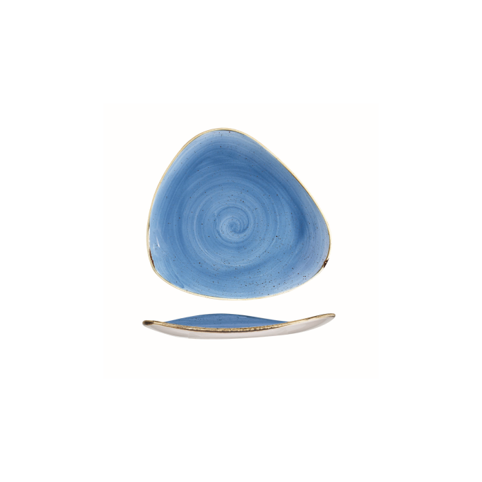 The Churchill Stonecast Cornflower Blue Triangle Plate measures 12" around. The interesting shape of the plate makes it great for serving eye-catching food and creating an exciting tabletop setting. Due to the nature of the ceramic manufacturing process, every piece of Stonecast will be slightly different. This adds to the overall charm of the range and makes it more appealing to mix and match different products.
