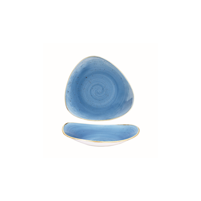 The Churchill Stonecast Cornflower Blue Triangle Bowl measures 7.25" around. The interesting shape of the bowl makes it great for serving eye-catching food and creating an exciting tabletop setting. Due to the nature of the ceramic manufacturing process, every piece of Stonecast will be slightly different. This adds to the overall charm of the range and makes it more appealing to mix and match different products.