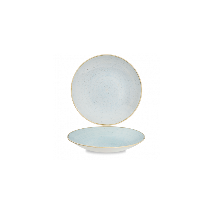 The Churchill Stonecast Duck Egg Blue Deep Coupe Plate measures 10.6", making it great for serving main meals and desserts. The coupe design of the plate contributes to the eating experience, effortlessly drawing the customer's eyes to the centre of the plate, and the food. The nature of the ceramic manufacturing process means that every piece of Stonecast will be slightly different, adding to the overall charm of the range and making it more appealing to mix and match different products.