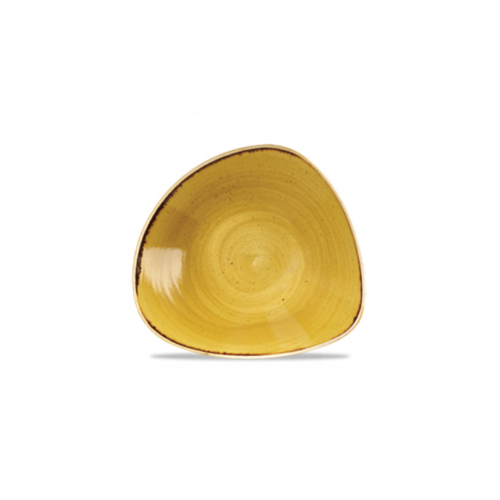 The Churchill Stonecast Mustard Seed Yellow Triangular Bowl measures 7.25" around. The slightly irregular, triangular shape of the bowl makes it an interesting plating choice for an eye-catching tabletop presentation. The nature of the ceramic manufacturing process means that every piece of Stonecast will be slightly different, adding to the overall charm of the range and making it more appealing to mix and match different products. The Mustard Seed Yellow would work well with neutral colours, serving as a standout on the tabletop.