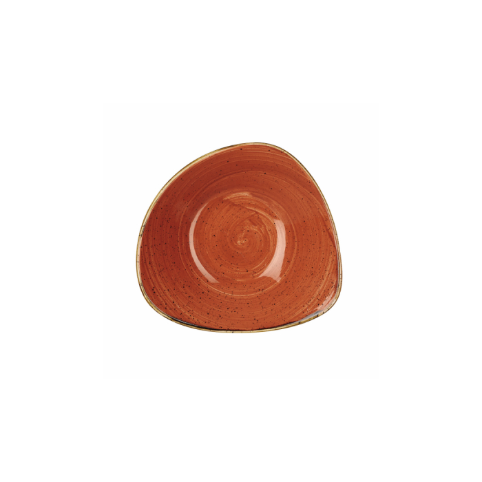 The Churchill Stonecast Spiced Orange Lotus Bowl measures 9" around. The triangle shape of the bowl creates an interesting background, making this bowl ideal for an eye-catching tabletop food presentation. Due to the nature of the ceramic manufacturing process, every piece of Stonecast will be slightly different. This adds to the overall charm of the range and makes it more appealing to mix and match different products.