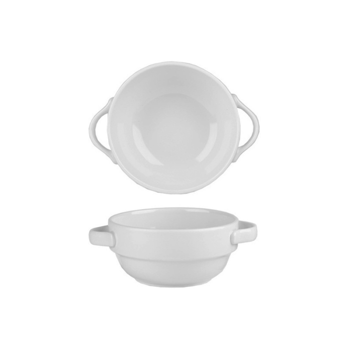 Each bowl is equipped with handles, offering ease of use and serving, while the deep bowl design is ideal for serving a variety of dishes, from hearty stews and soups to desserts. The brilliant white porcelain not only looks stunning but is also versatile enough to complement any dining setting, from everyday meals to special occasions.