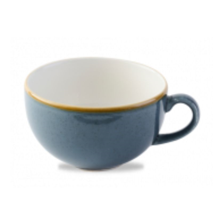The Churchill Stonecast Blueberry Cappuccino Cup, with a 12oz capacity, is perfect for serving larger cappuccinos and other coffee drinks. Its deep Blueberry colour and hand-decorated finish ensure each cup is unique, adding a rustic charm to your coffee presentation.