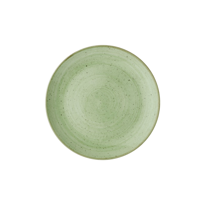 Enhance your dining table with the Churchill Stonecast Sage Green Evolve Coupe Plate. Measuring 8.67 inches, this plate is perfect for serving appetisers, salads, or desserts. Made from super-vitrified porcelain, it combines strength with a sleek, modern design.