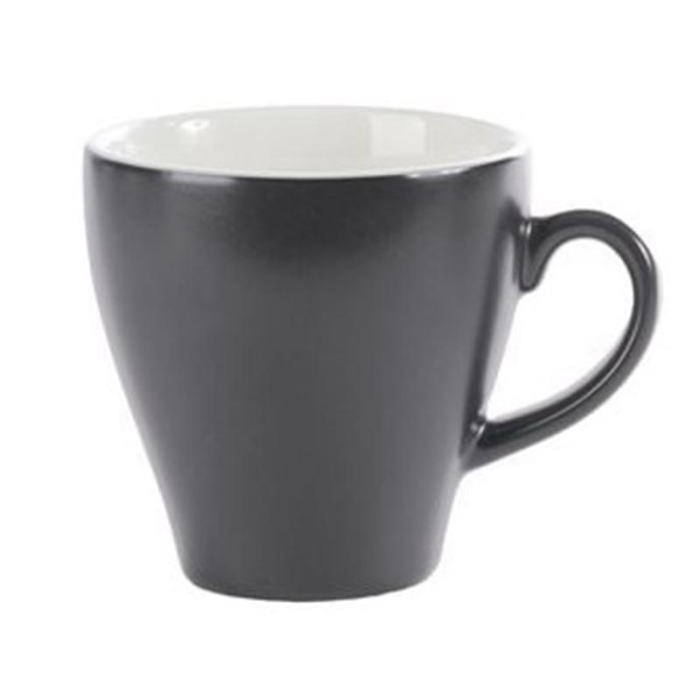The Evolve Pebble Torino Coffee/Tea Cup holds 250ml and comes in a pack of 6. The pebble colour is dark and eye-catching, but also neutral enough to go with most establishments' pre-existing colour schemes and themes. Pebble is the new black, dark enough to impress but not flat.