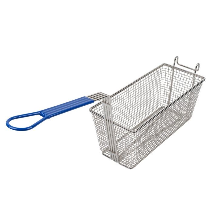 The blue handle of the basket provides a comfortable grip and remains cool to hold, even during high-temperature frying. This ergonomic design ensures safe and hassle-free handling, allowing you to focus on creating the best dishes without any discomfort. The blue handle also allows you to follow the food industry standard when it comes to food safety. Our blue handle frying basket can be used alongside our other colour-handled baskets to ensure different types of food are kept separate. Our blue-handled basket can be used to fry seafood such as fish or crispy calamari.