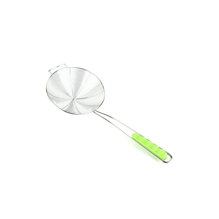 Whether you're a seasoned chef or a home cook, the Green Handled Skimmer's blend of practicality and vibrant design sets it apart as a valuable tool in your cooking. Its easy-to-clean build adds to its convenience, allowing you to focus on your creations without worrying about cleanup.