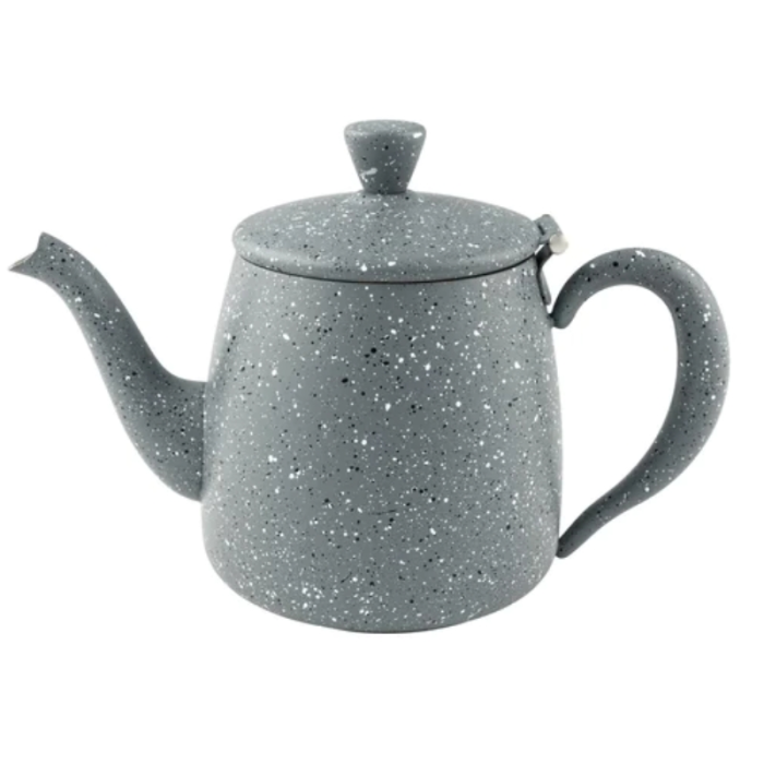 The Grunwerg Café Olé Premium 18/10 Stainless Steel Teapot in Grey Granite is perfect for hot cups of tea. The unique and original granite design is sure to catch the eye and make a great impression. The hollow stay-cool handle ensures you can pour the tea easily without burning your hands. There is also a Swan-neck pouring spout to prevent splashing when pouring.