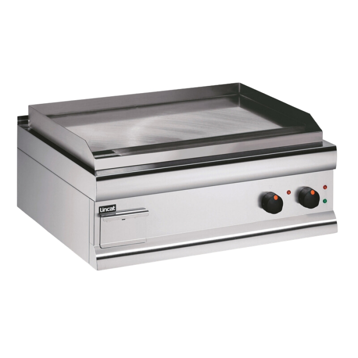 The Lincat GS7/N is a natural gas griddle with two independently controlled heat zones. It gives you the option to turn off one side of the griddle during quieter times or to cook two separate dishes at the same time on different sides of the griddle at different temperatures.