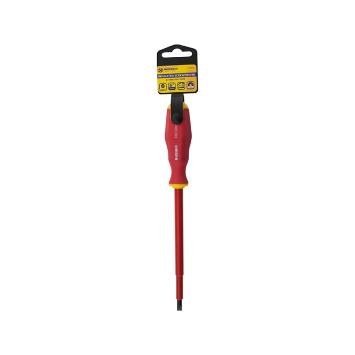 The Marksman Insulated Screwdriver with a 6-inch (15cm) length and a flat head is a versatile tool designed for electrical work and tasks that require insulation against electrical currents. Crafted for safety and precision, this insulated screwdriver ensures reliable performance in various electrical applications.