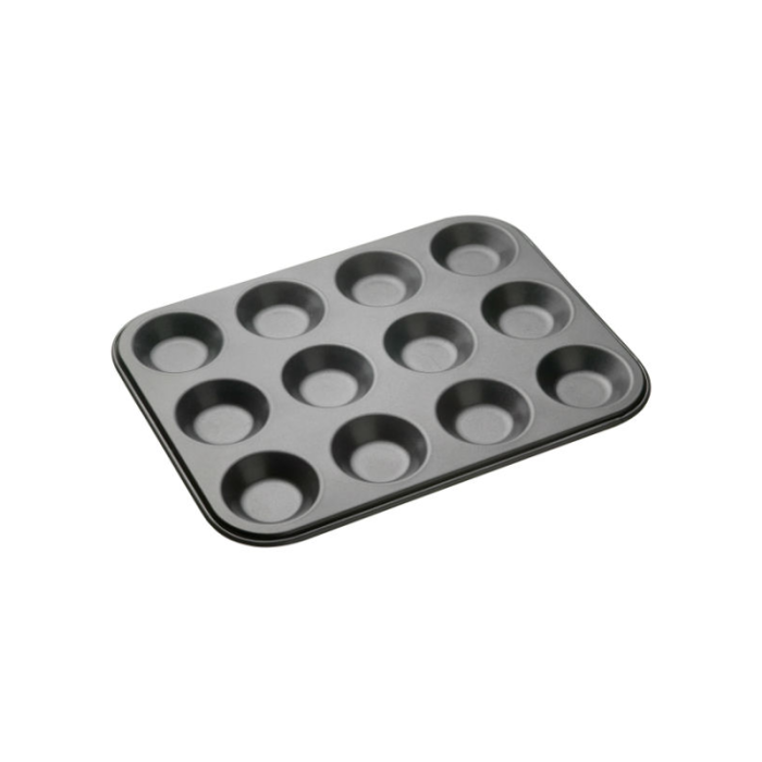 The MasterClass 12 hole shallow baking pan is perfect for making delicious cupcakes, fairy cakes, muffins and little Yorkshire puddings. Boasting a double non-stick coating, this baking pan makes light work of removing precisely baked items without ripping or tearing. Constructed from commercial heavy duty 1mm steel, this 12 hole baking sheet is part of the MasterClass award-winning bakeware collection that guarantees years of satisfying cooking and baking.