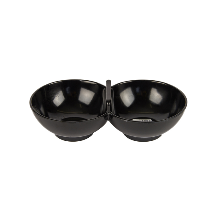 The Melamine Twin Pickle / Condiment Bowl in black is a great item to have for Indian restaurants. It can be used to serve condiments and sauces to accompany pickles and other starters at Indian restaurants. Also, the condiment bowl can be used as an alternative to traditional ramekins, thanks to the curved shape of each individual bowl. The entire bowl measures 21.5cm around, and up to 2 different sauces or condiments can be served.