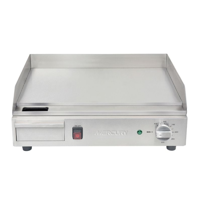 With an easy-to-clean stainless steel body and a built-in grease management system, maintenance is a breeze. The removable drip tray efficiently collects grease, helping to maintain a clean cooking environment. Whether you’re running a small cafe or operating a bustling food truck, the Mercury 20” Heavy Duty Electric Griddle is the ideal solution for delivering great-tasting, evenly cooked food in a space-conscious package.