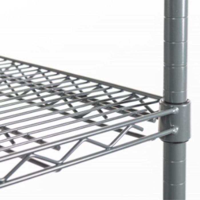 It can also be used to store dry goods like flour, sugar, and canned goods in pantries or storage rooms. Also, it would be great for storing smaller equipment like trays and containers. The wire construction allows for easy cleaning as well.