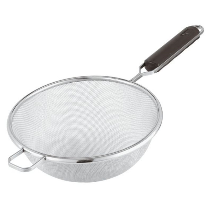 This sieve is dishwasher safe, a bonus for busy environments. It can be quickly washed between uses. For a deeper clean and to remove stuck food debris, handwashing is recommended. Ensure the sieve is fully dry before using it again. As the strainer is made from high quality stainless steel, it can last frequent use and washing, as would be expected from busy cooks and chefs.