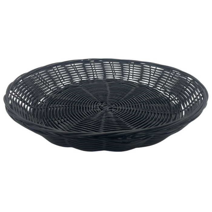 Polywicker baskets are great for storing a variety of items, such as blankets, throws, pillows, magazines, toys, and more. They can be used in the living room, bedroom, bathroom, or anywhere else you need extra storage. The basket measures 7 x 1.5" around and is made from black wicker, making it versatile for different tabletops or spaces.