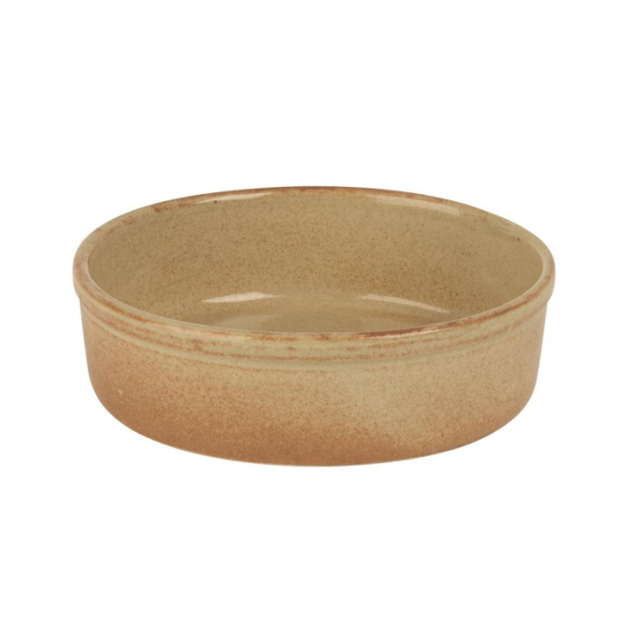 The 12-pack Rustico Flame Round Tapas Dish, measuring 10cm in diameter, is perfect for serving mixed olives and nuts. Its compact size and two-tone design add a classic touch to any tapas, making it an excellent choice for use in restaurants and homes.