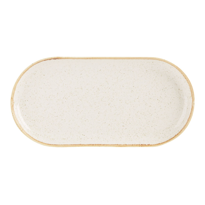 Let your food shine with a Season by Porcelite oatmeal narrow oval plate with a 32cm / 12½” length and a 20cm / 8” width.