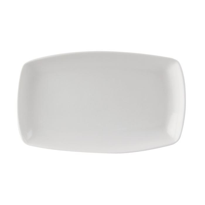 This plate features a sleek and modern design, with clean lines and a spacious rectangular shape that adds a touch of sophistication to any table setting. Its generous dimensions allow the perfect presentation space, making it ideal for showcasing a variety of culinary creations.