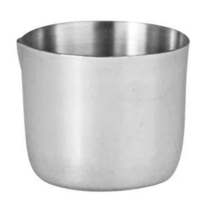 The Stainless Steel Economy Milk Tot has been designed for holding and pouring milk for coffee, tea and other beverages. Stainless steel is durable, rust-resistant, and easy to clean, making it perfect for repeated use with milk.