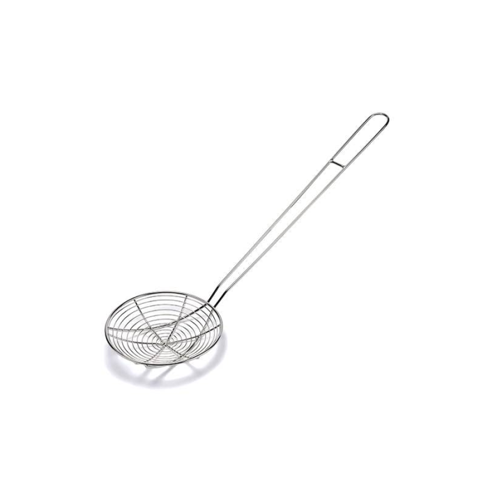 The long handle of the Cooksmill skimmer / spider keeps cooks and chefs hands away from hot oil or water. The solid stainless steel design ensures that even though your hands may be further away you still have complete control.