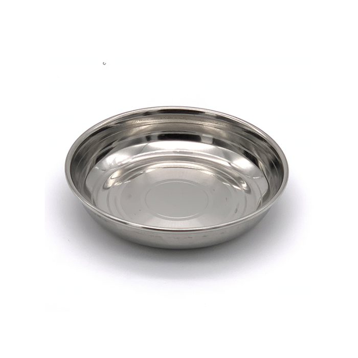 Stainless steel is ideal for tableware. It is rust-resistant, stain-resistant, and dishwasher safe. The plate can also handle high heat for serving purposes, such as serving hot food straight to the customer. It would also fit in well with other tableware products, stainless steel is a timeless finish for plates.