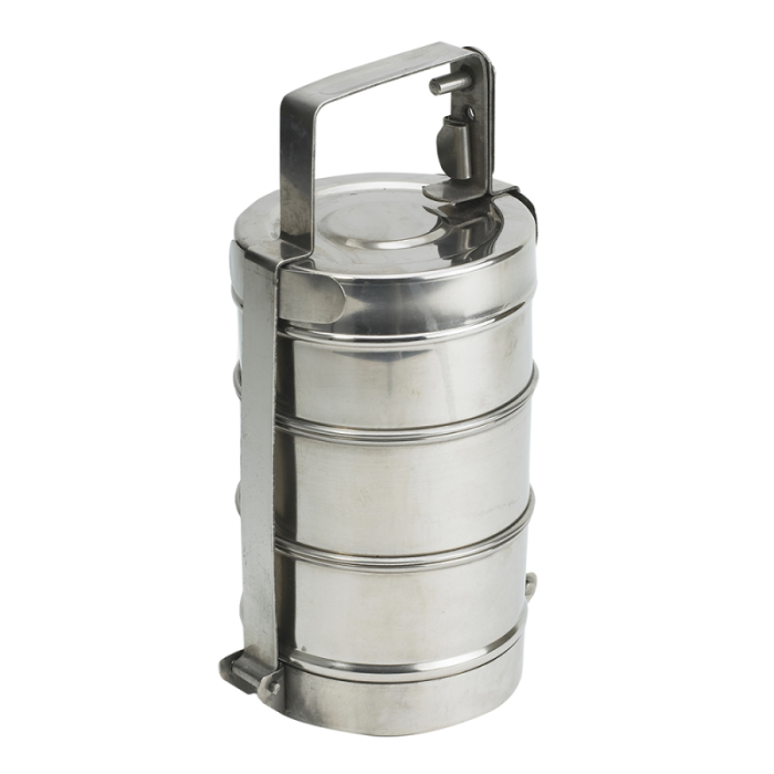 Perfect for packed lunches and restaurant takeaway transportation, this stainless steel Tiffin makes serving and carrying food easy.