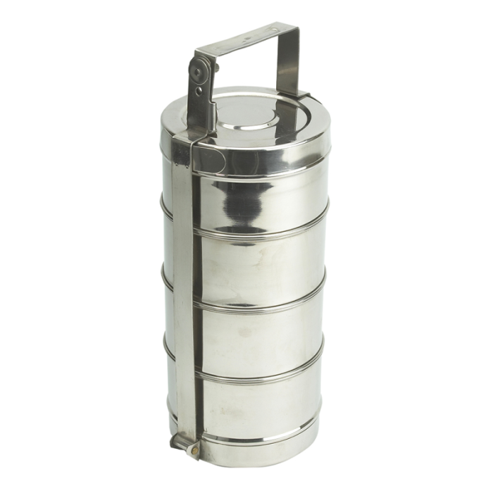 Perfect for packed lunches and restaurant takeaway transportation, this stainless steel Tiffin makes serving and carrying food easy.