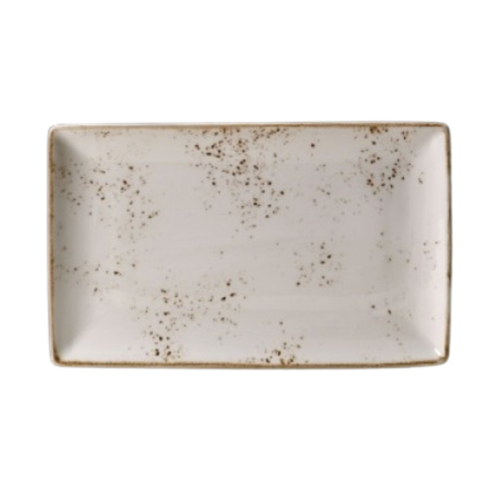 The Steelite Craft White One Plate measures 27 x 16.75cm, making it the perfect size for sharing dishes, or for serving finger food at parties and larger gatherings. The speckled and unique design of the plate means that no two items are the same, further boosting the charm and individuality of this collection. Also, the plate is freezer, dishwasher and microwave safe, a bonus for those looking for a reliable and tough plate.