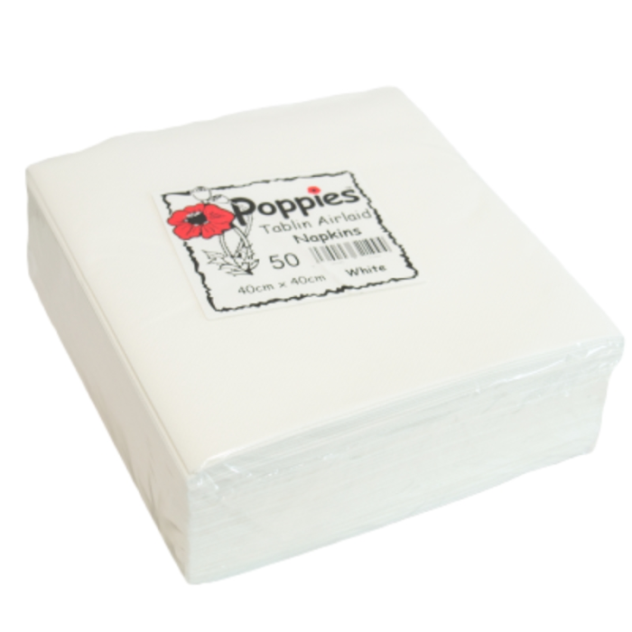 Poppies’ White 4 Fold tablin airlaid napkins are perfect for wiping post-lunch fingers and mouths, or for hand drying.