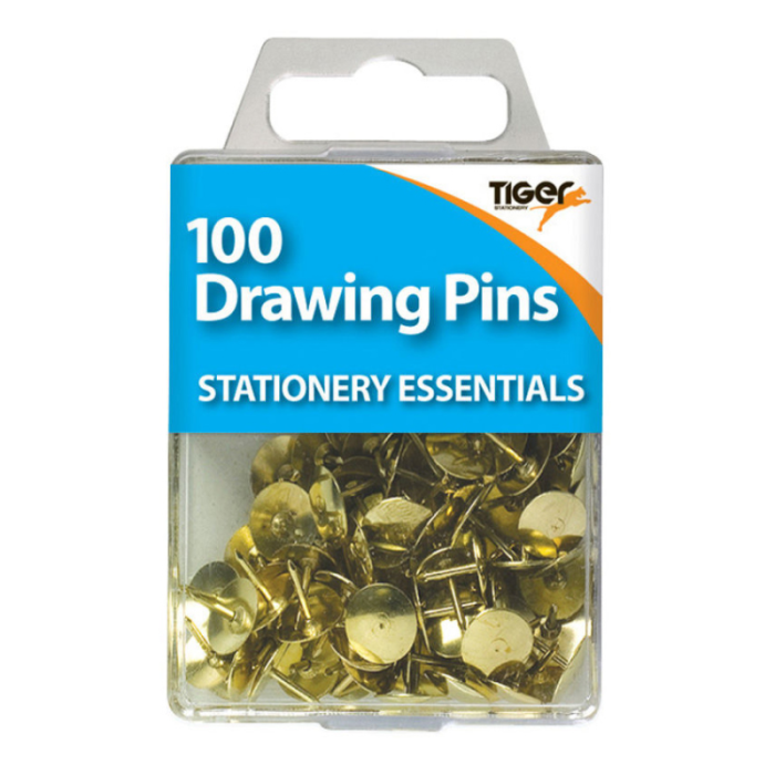Add a touch of elegance to your notice boards with Tiger Gold Coloured Drawing Pins, available in a pack of 100. These pins not only serve the practical purpose of pinning notices, memos, or pictures to cork boards but also add a decorative element with their luxurious gold finish.
