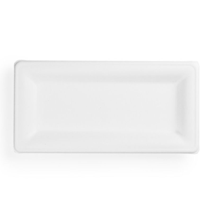 Vegware’s Bagasse rectangular plate is made from Bagasse which is reclaimed sugarcane fibre and is tree-free, resulting in the plate being much more eco-friendly when compared to alternate disposable examples made from paper and polystyrene. Boasting an award-winning quality, all of Vegwares disposables are made from plants, not plastic and are also commercially compostable
